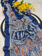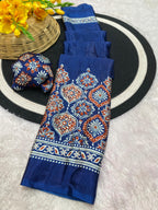 Bhandani Print Moss chiffon Blue saree with mirror work Border
