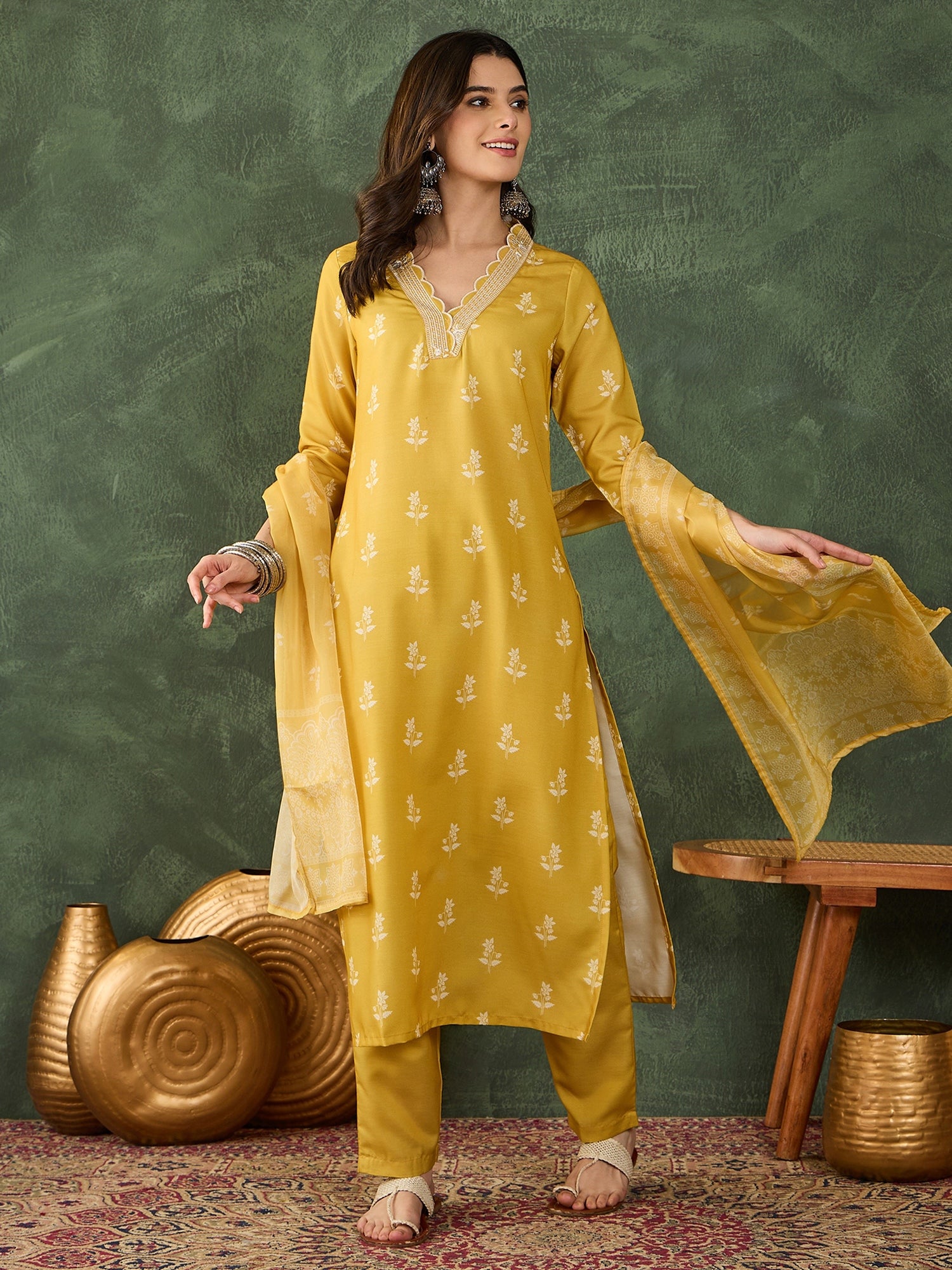 Yellow Printed Kurta Set with Dupatta